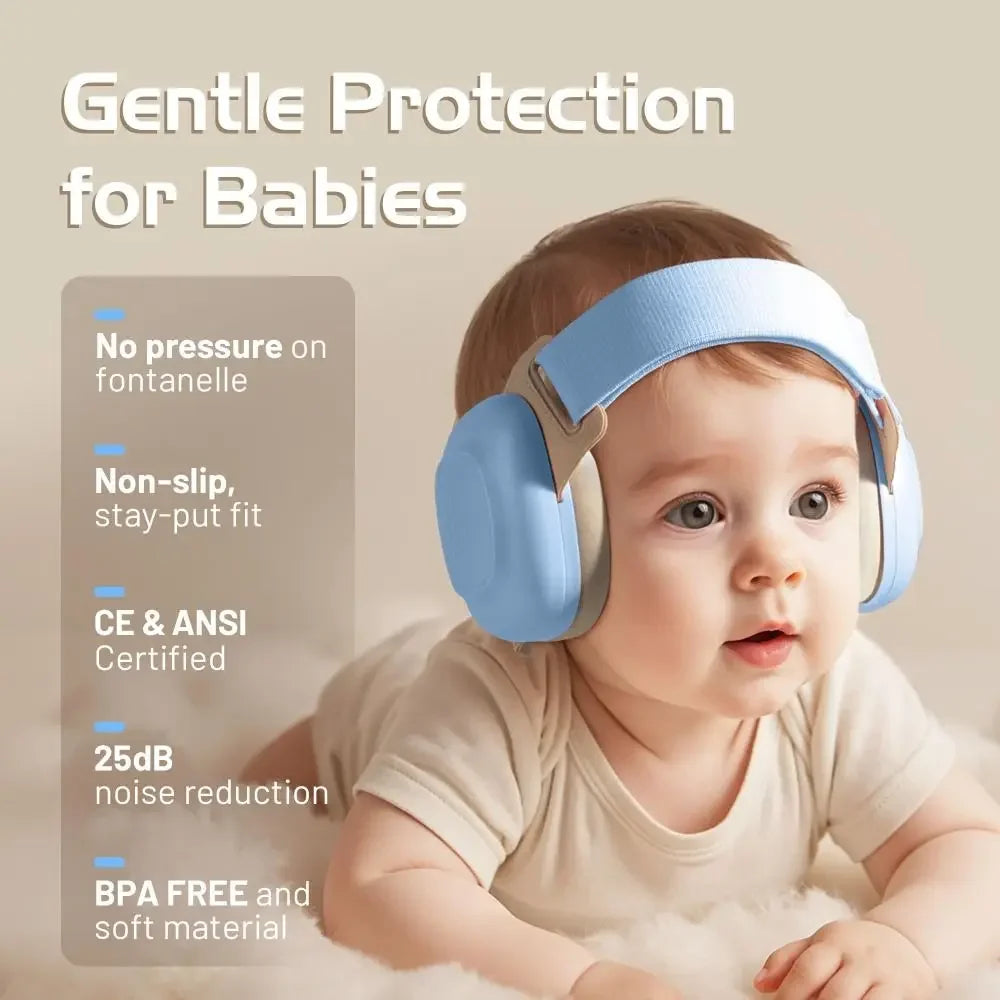 -Comfortable & Safe:Baby noise cancelling earmuffs feature soft ear cups with thickened acoustic foam, made from lightweight, skin-friendly materials for a cozy fit even during long wear.