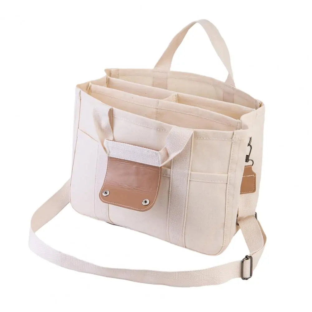 Canvas Tote Bag with Handle Large Capacity Multiple Compartment Wear Resistant Waterproof Storage Pouch with Pockets