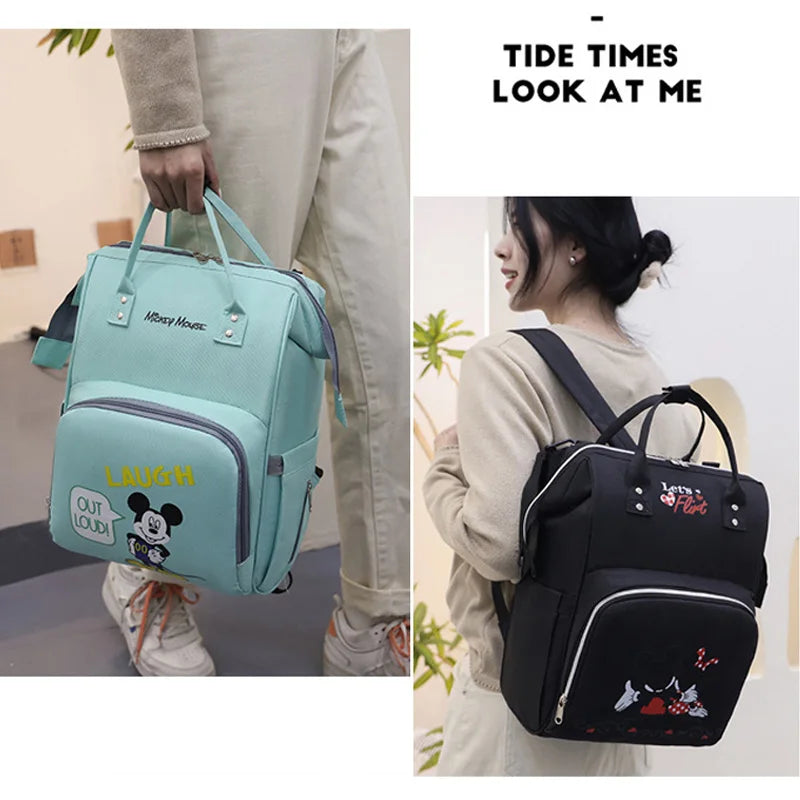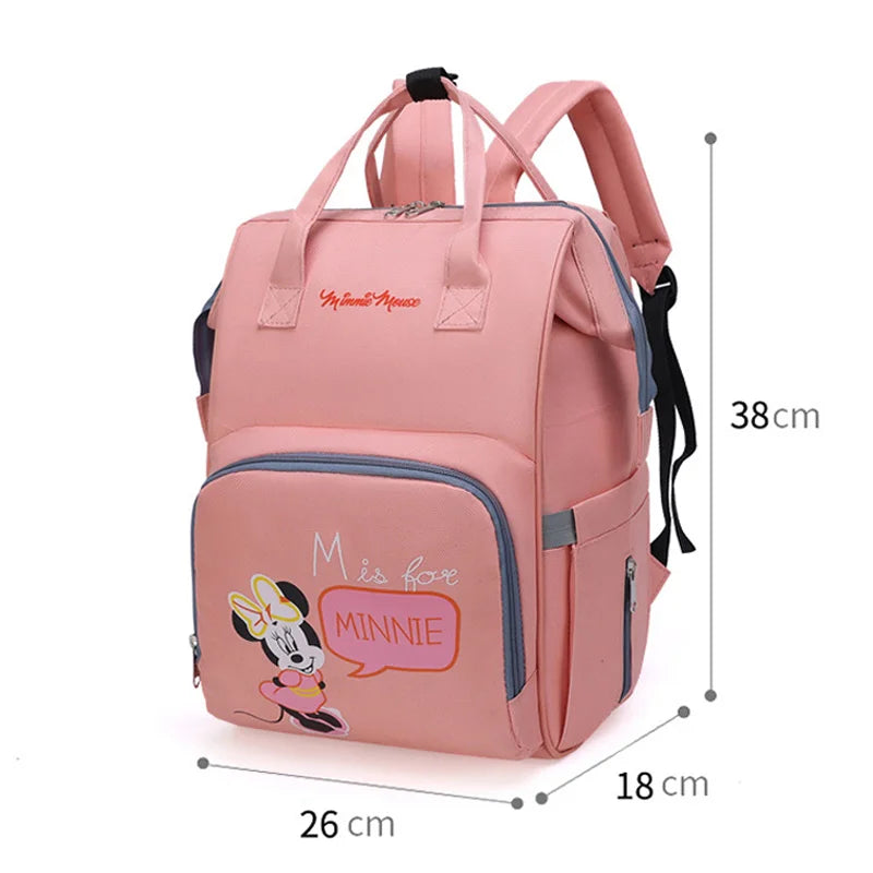 Disney Mummy Baby Diaper Backpack Bottle Insulation Bag Cartoon Minnie Mickey Kid Feeding Care Handbag With Cart Hook