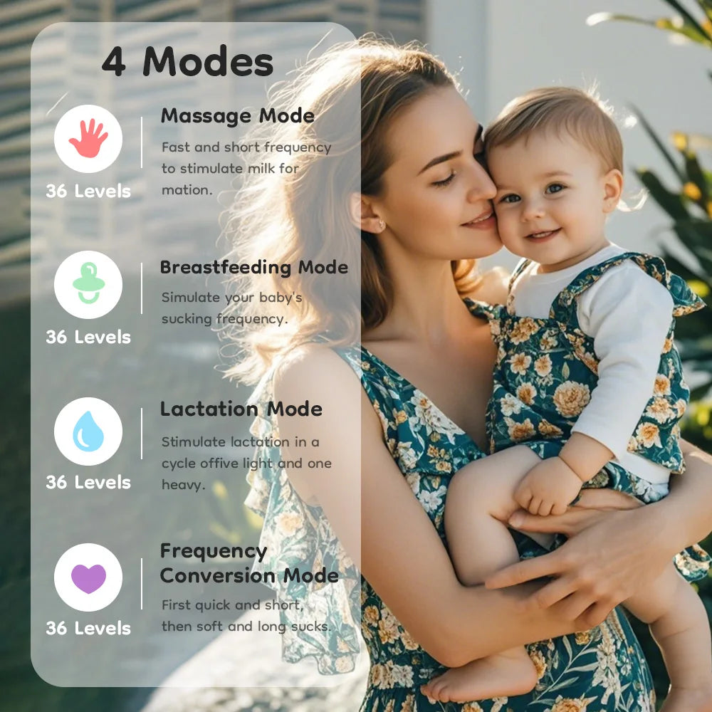 1. Mode: Four modes (lactation mode, sucking mode, frequency conversion mode, normal sucking mode)